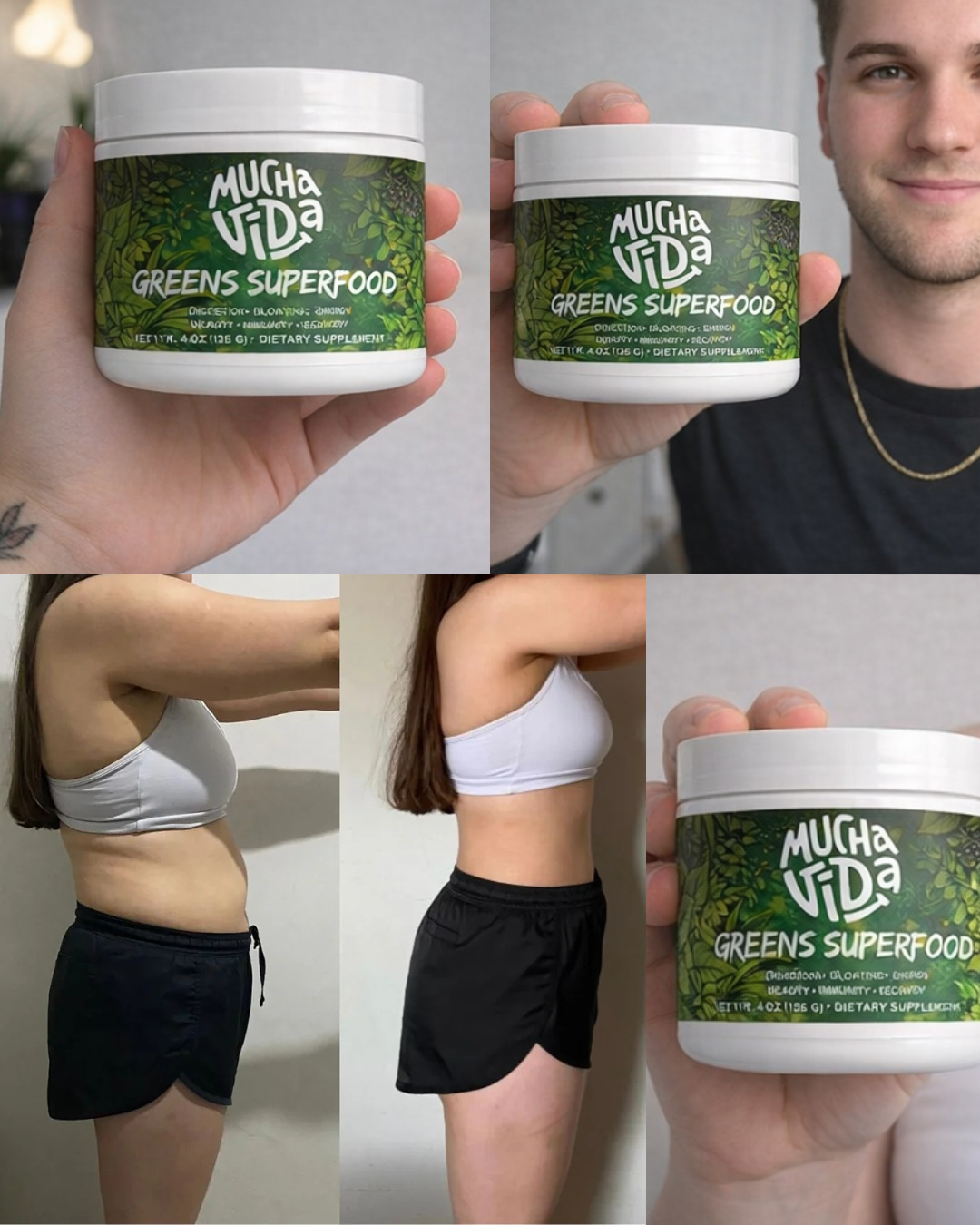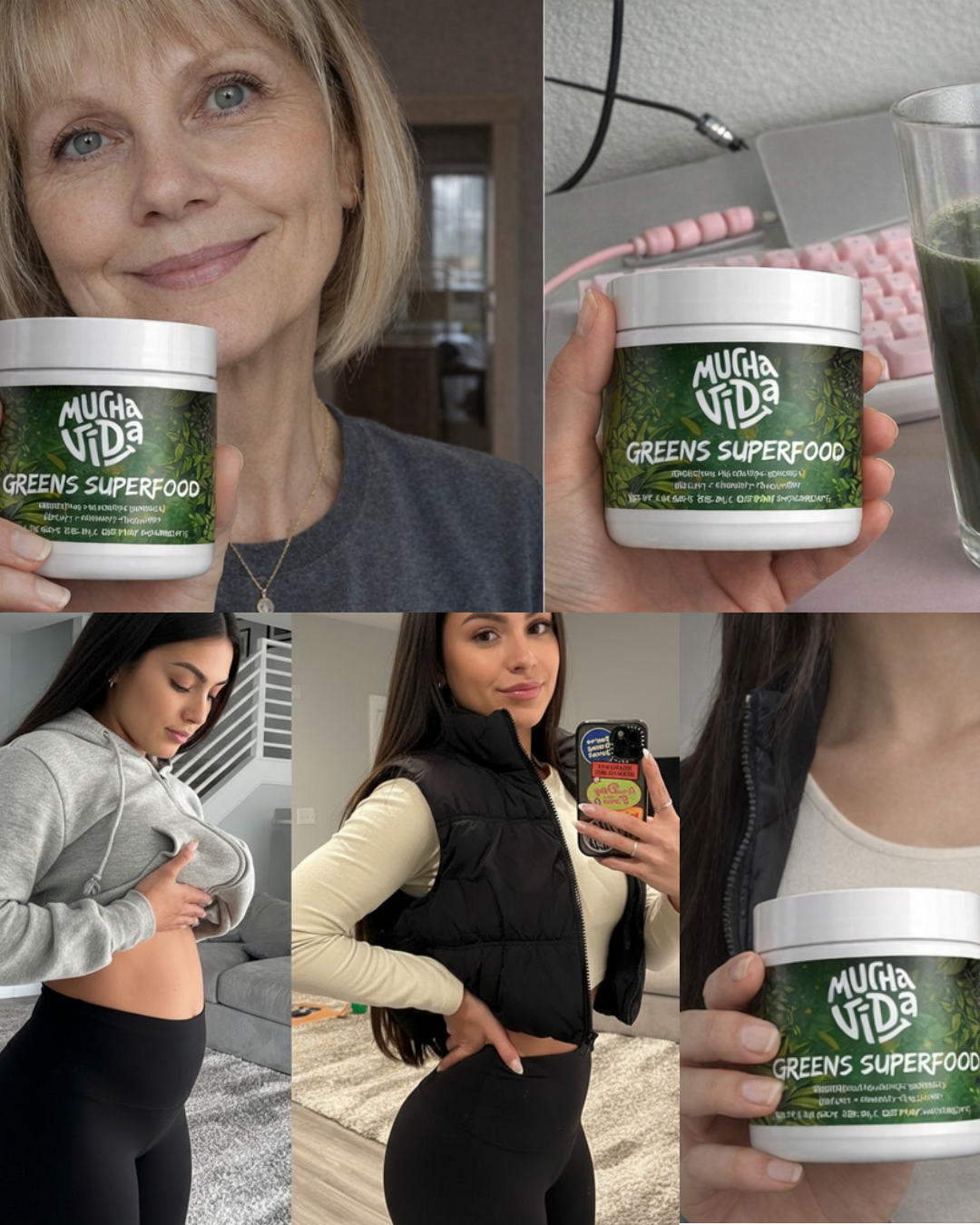 Mucha Vida Greens Superfood me da energía limpia y enfoque mental, con un sabor agradable que se disfruta todos los días. Se siente bien saber que estás apoyando tu salud sin caídas de energía ni malestar.