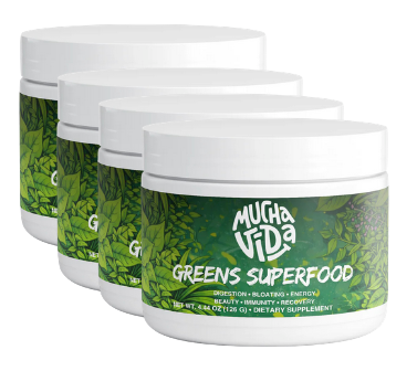 Mucha Vida Greens Superfood · 4x Frascos - 2 Frascos GRATIS